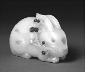 以此可见,在中国古代传说中,玉兔已经成为中国古代传统社会中的重要祥瑞之物。《艺文类聚》卷九五引《抱朴子》之言,就有“兔寿千岁,满五百岁则色白。”也就是说,白色之兔是大吉大利之兆,民间也曾有“白兔一现天下安”之说。
