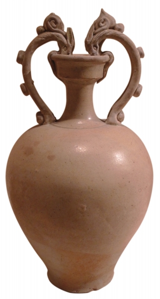 白釉双龙柄盘口瓶(隋唐)