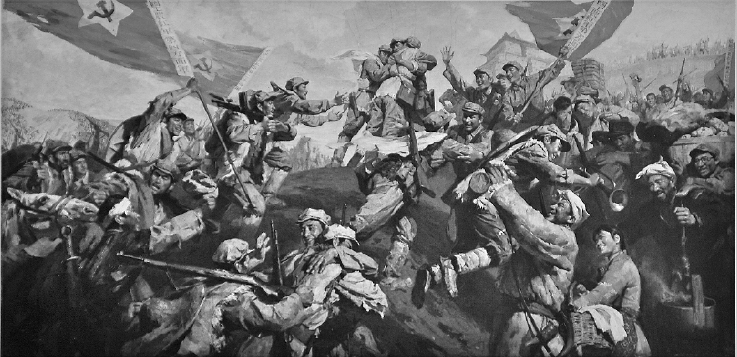 《三大主力会师》蔡亮、张自嶷1977年 尺寸:331×166厘米 中国人民革命军事博物馆藏 布上油画
