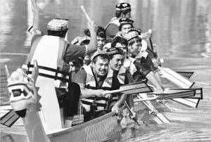 此次影像展分5个系列用光影展现新疆人文的魅力。上图为《阿拉尔市赛龙舟》,志清摄。题图为《第四届亚欧丝绸之路国际服装节掠影》,李铭摄。 资料图片