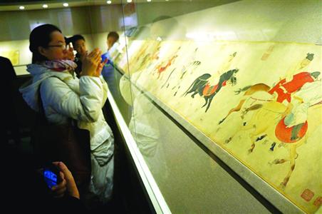 12月4日,观众在全国农业展馆观赏《五王醉归图卷》。 /CFP