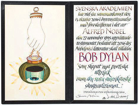 鲍勃·迪伦的诺奖证书