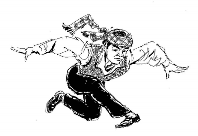 贾作光先舒展一下身骨,顺手把围巾系在腰间。然后哼了哼曲调,转身对我妈妈笑了笑,说:“大娘,看这个!”他脚尖一立,手一扬,目光一闪,火爆而急促地跳了起来,大甩臂,大仰胸,疾骤旋转,一腿跪地,腾然跃起……我从来不知道他会如此熟练地表演西班牙舞!