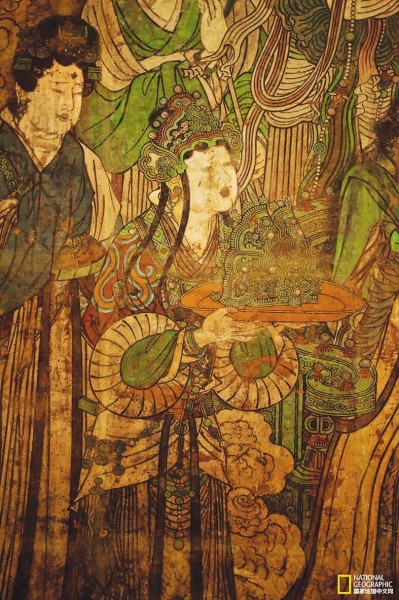 这铺壁画出自山西省稷山县兴化寺。抗战期间,这座寺庙被毁于一旦,片瓦不存,至今为壁画留下不少未解的谜团。