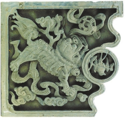 天津博物馆藏清代刻砖《狮子滚绣球》