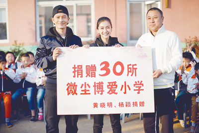 2015年10月,黄晓明、杨颖夫妇携微尘基金捐赠30所博爱小学