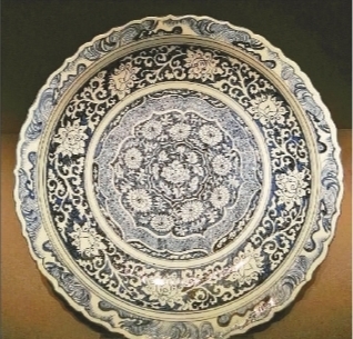 图①:元青花大盘 本报记者 李韵摄/光明图片