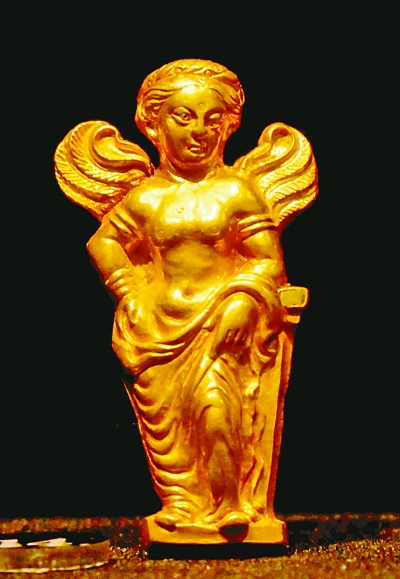 ④蒂拉丘地出土的黄金制成的“带翅膀的阿佛洛狄特”。本报记者 李韵摄/光明图片