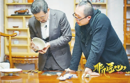 张国立、张铁林在真人秀节目《非凡匠心》中亲手锔瓷