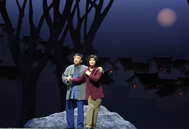 向农为带头贯彻当年计划生育政策执意要弟妹打掉肚里的孩子,此时他向弟弟道歉。向中借酒劲儿骂他为保官泯灭人性、气死父亲、气聋母亲、绝他后代,不依不饶。哥儿俩的痛饮摔杯、推碰移闪,动作开合,一生一净,形成火热的对手戏和典型的戏曲桥段。聋子母亲踉跄奔出,斥责向中不该这样对待患癌症晚期的哥哥。激情演唱西皮导板转原板的老旦唱腔,历数向农多年来为村民做了多少好事、难事而积劳成疾。演唱深情、激越,让人想起《红灯记》中李奶奶探监、心疼李玉和的演唱以及很多传统戏中老旦一唱就炸窝的唱,进一步揭示了人物的隐秘,补叙了往事,推动了剧情的发展;同时,这里还充分利用了京剧的行当特色和传统唱腔的板式与调性,掀起感情的风暴。