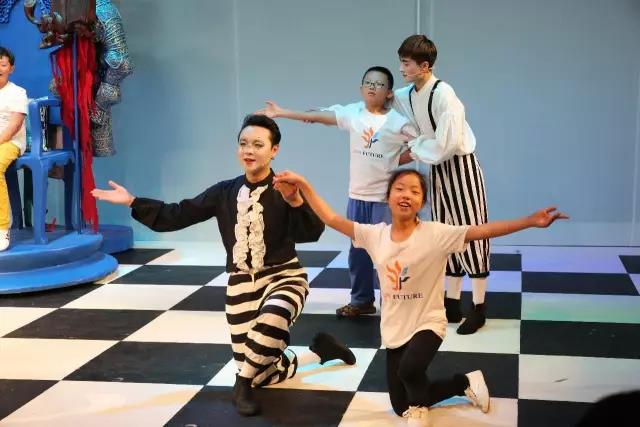 “像我这样,把手伸起来,脚尖踮起,转,转,对,一二三、二二三。”“好,可以开始了,现在正式表演,开场宫廷舞音乐,起!……”在观演前听导演讲戏、观演后听主创谈戏之后,直接上台学戏,然后与主演一起演戏——随着优美的音乐响起,《李尔王》7位男演员每人手中牵着一个孩子,翩翩起舞,虽有些生涩,但孩子们舞起来也是有模有样,这样与戏剧亲密接触让孩子们难掩激动,感觉不虚此行。5月22日,中国儿艺和阳光未来艺术教育基金会联合主办的“迎六一打工子弟公益专场演出”活动在中国儿艺小剧场举行,由阳光未来艺术教育基金会理事长、著名主持人杨澜带队,来自北京大兴区西红门镇寿宝庄蒲公英中学的学生等百余名打工子弟欣赏到了中国儿艺2017年新创排的莎翁经典《李尔王》,而活动精心策划的各种环节让孩子们享受了难得的观演经历。