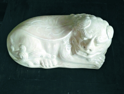 当年乾隆皇帝在得到一件宋代定窑白瓷孩儿枕时非常欣喜,特地作了一首诗:“瓷枕通灵气,全胜玳与珊。眠云浑不觉,梦蝶更应安。”定窑一直被视为宋代五大名窑之一,创烧于河北定州曲阳,河南当阳峪窑、禹州扒村窑和鲁山段店窑都生产有定瓷一类的器物,通常被称为定窑系。特别要引起关注的是,近年发现的段店定瓷,其种类和质量都比曲阳定瓷更胜一筹,色彩有白、粉、绿、黄、酱、黑等多种,器型有瓶、盘、枕、壶、尊等,烧制于北宋早中期,烧制温度比曲阳定窑略高。白瓷颜色也较为洁白,玻化程度较高,瓷胎也较精细,并出现不少宫廷刻款。当地的藏家认为段店定瓷有可能是皇家用瓷,理由是鲁山属于汝州辖下,而汝窑为继定窑之后的北宋官窑。汝州离京师不远,既然有能力生产这么精美的白瓷,完全没有必要舍近求远,到河北的曲阳去生产官窑白瓷。目前见到的段店白定瓷工艺制作水平达到很高的程度,笔者收藏的瓷枕中就有工艺复杂、制作精细的,如一件白瓷狮枕,刻花极其精细,狮子的毛发纤毫毕现,狮子的塑造结构复杂,立体感强,十分罕见。当然还有印花、划花、剔花各种造型和工艺的瓷枕,有的填补了国内外博物馆空白。