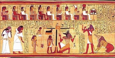 大英博物馆所藏的这类埃及文物中,堪称镇馆之宝的 《亚尼的死者之书》,就是古埃及生死观的明白表现。死者之书是古埃及常见的随葬物品。笃信来世的古埃及人用水生植物纸莎草芯制成长长的纸卷,在上面记载死者为获永生所必经的各种磨练、审判、所需的咒文等等并配以插图,以求死者逢凶化吉,安然到达极乐世界。收藏家佛里斯班士于1887年在尼罗河中游克索西岸的墓室中发现了 《亚尼的死者之书》,墓主亚尼是距今约3200年前的真实人物。这一死者之书可谓迄今已知以草纸记录的死者之书中保存最完善、描绘最精美的。其中,最有名的段落是“秤心仪式”:天平上,死者的心脏与正义女神翅膀上的一根羽毛加以比较,心脏若不重于羽毛,则说明死者生前积德,可享永生,否则,心脏便会被画面右边的怪物所吞噬,死者没法进入来世。画中,有的神在调整天平的精确度,有的神准备记录测量,有的神在担任陪审,一个神与人共存的世界跃然纸上,反映出古埃及人对神灵的虔诚信仰。