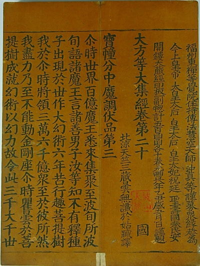太原市文物考古研究所存宋元丰八年《大方等大集经》卷第二十卷首题记。 韩革摄/光明图片