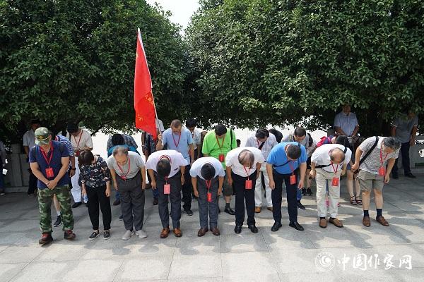 采访团向碾庄圩战斗中牺牲的烈士鞠躬 摄影:樊金凤
