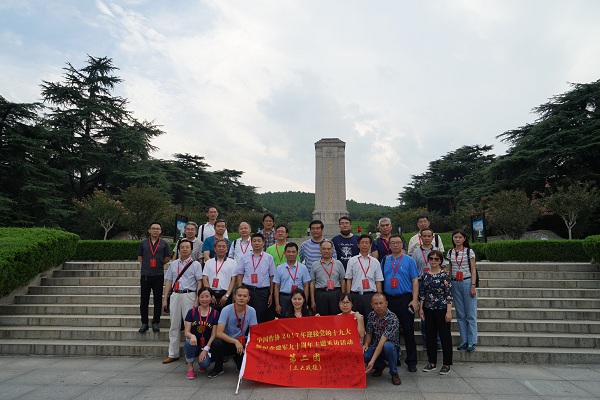 采访团在淮海战役烈士纪念塔前合影