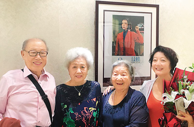 著名演员谢芳(左二)等在谢芳主演的电影《青春之歌》剧照前留影
