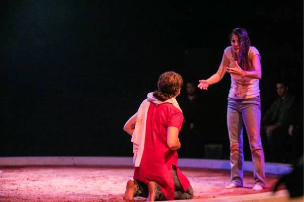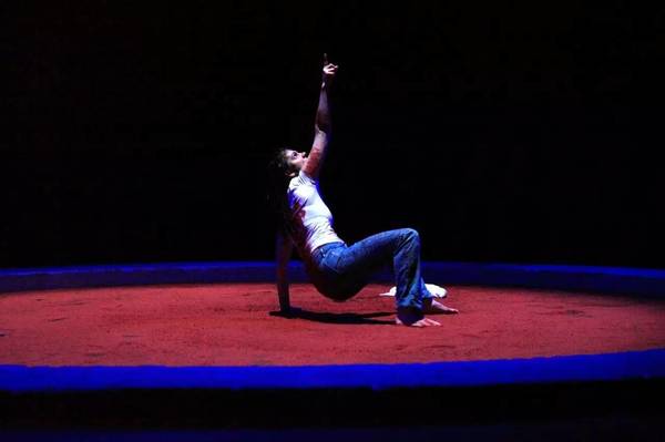 于是,我们在这版《安提戈涅》里,看见了一场沙子与血的盛宴,权利与人性的较量。导演将斗牛士与公牛之间的对决,和安提戈涅与国王、与权威之间的抗争做比拟。红色的沙子象征着鲜血、生命、死亡。在这样的舞台中,安提戈涅的斗争与死亡更显悲情。她已用尽全力去进攻,依旧像公牛倒在斗牛士面前一样,无法扭转自己的命运。而且,在发现内心的正义世界与残酷现实体系相距甚远的时候,她渴求死。