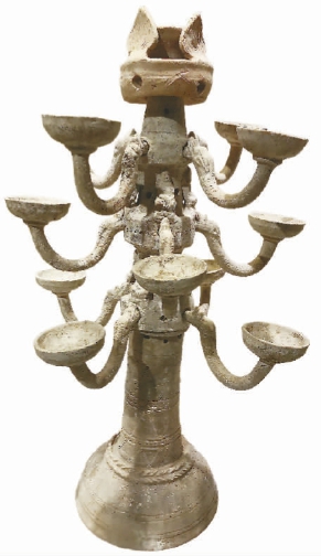 十六国时期陶质星象纹底座带佛像十三龙头枝灯
