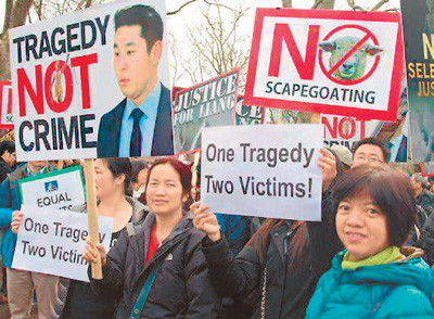 图为2016年2月,美国多个城市的华侨华人社团组织声援华裔警官梁彼得大游行。 资料图片