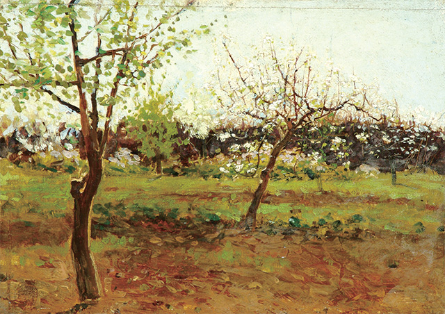 展览从19至20世纪初的经典的俄罗斯艺术家开始——克拉姆斯科伊、列宾、列维坦、马科夫斯基、涅斯捷罗夫、库斯托季耶夫、谢罗夫。上述艺术家中的每一位都为俄罗斯艺术乃至欧洲艺术的发展做了很大的贡献。列宾是一位优秀的肖像画家(《弗列德里克斯的画像》)、风俗画家(《神像前面》)。他善于利用高超的技巧呈现事物的特点。除了列宾之外,克拉姆斯科伊、马克夫斯基、库斯托季耶夫也是一流的肖像画家。希施金的《松树林》《牛蒡叶(草图)》、列维坦的《盛开的苹果树》《阿尔卑斯山(草图)》可谓是俄罗斯现实主义风景画的奠基人。谢罗夫的创作特点是自由性和精湛的艺术技巧,《克里米亚的院子(草图)》即是如此。涅斯捷罗夫作品中呈现的形象则是以象征性而非现实性的手段对人与世界作了阐释(《姐妹》,1915)。