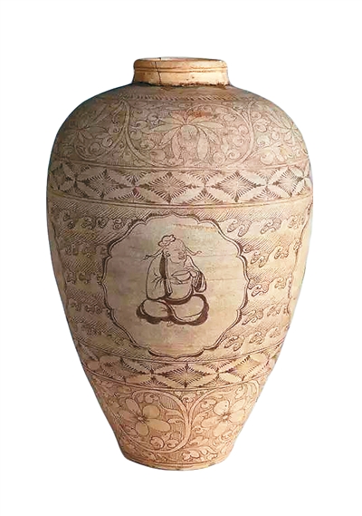 宋奇石窑褐彩 醉酒人物经瓶