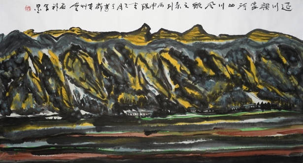 梁家河山川风貌国画系列之一(六尺整开)