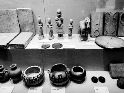 比如刘庄遗址,展览中的彩陶钵、石钺和各种炊具看着虽不起眼,距今都有三四千年,它们的主人被认为是商族的祖先——没错,我们都知道郑州叫商城,但是使用甲骨文字的商朝人从何而来,这个疑问或许要靠这些文物去解决。再比如新郑胡庄墓地,很多人都不知道它,但这个墓地是赫赫有名的战国七雄之一韩国的王陵区,精美的兽面纹铜纽钟、银辅首衔环、错金银嵌金玉铜带钩等,让2000多年前韩王夫妇奢华的“地下生活”再度呈现在我们面前。还有固岸墓地,你不仅会为数量巨大的随葬俑所吸引,还一定会被展厅里的带有异域风情的精美围屏石榻(石床)所震撼,它的主人是安阳一对1500年前故亡的夫妇,被发现时两具骨架安然并卧,肢体松弛。围屏内侧,墨线勾出墓主夫妇画像和孝子图。当你立于榻前,屏息面对,仿佛仍然可以听见墓主两口子犹在呢喃私语……