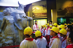 小讲解员高梦熙在北川羌族民俗博物馆为东辰二小的同学们介绍羌族始祖——炎帝。 北川羌族民俗博物馆供图