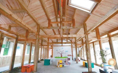 纯化乡村景观风貌的设计,不仅仅体现在民居和一些小体量公共建筑的改造,对于乡村传统建筑形态的尊重,也体现在如小学这样具有标志性意义的公共建筑的创新性形式设计,使得整体乡村景观风貌呈现出统一中的变化、纯化中的创新。
