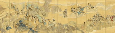 在题材选取方面,如海派代表画家任伯年常画《群仙祝寿图》《松鹤图》《钟馗捉鬼图》等民间喜闻乐见的传统祥瑞题材,其画中历史人物、文学故事、释道神仙,乃至市井小民的人物形象,以俗为雅、以俗为新。用笔丰富,精描、细勾,没骨、渲染等多种笔法共用。人物造型多用变形与夸张手法,以凸显图中人物的性格和喜剧效果,如他所画《寿星捧桃》中的寿星形象颇奇特,寿眉垂直竖长,光秃额顶高耸如山。画中人物的夸张变形能与现代日常生活中人物的动作紧密相结合,画家常以现实生活中的人为模特作画,使画中的神仙也附带上了市井俗人的现实性,在神-人之间造成相互关联与对比。任伯年画神仙图,图中神仙抱膝独坐的姿势就是凡人常见的,其闭目养神也是俗人之态。如此,天上与人间、神仙与凡人之间就无隔阂了。