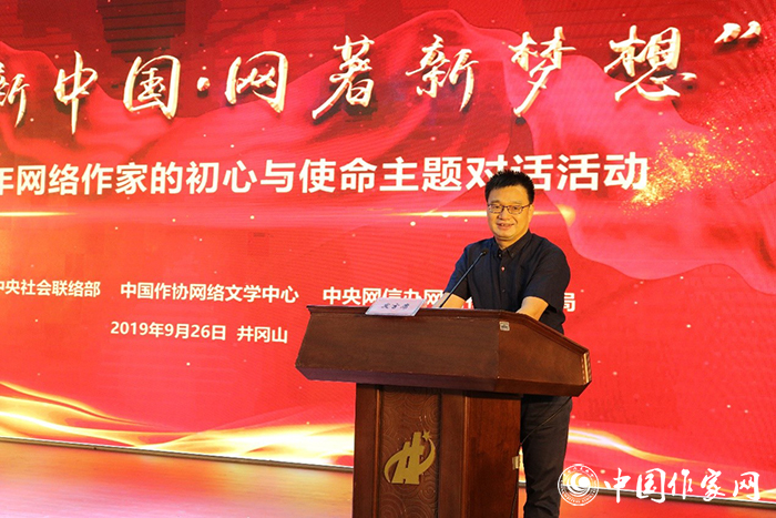 全国青少年井冈山革命传统教育基地管理中心党委委员、副主任朱迎参加开班仪式并为培训班授旗。朱迎对网络作家们的到来表示欢迎,带大家回顾了井冈山精神和作为革命圣地的井冈山的重要历史意义,并希望大家通过此次培训学有所成、学有所获、学有所得。