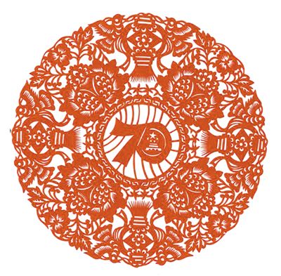 庆祝中华人民共和国成立七十周年国庆招待会民间剪纸纪念品《普天同庆》。