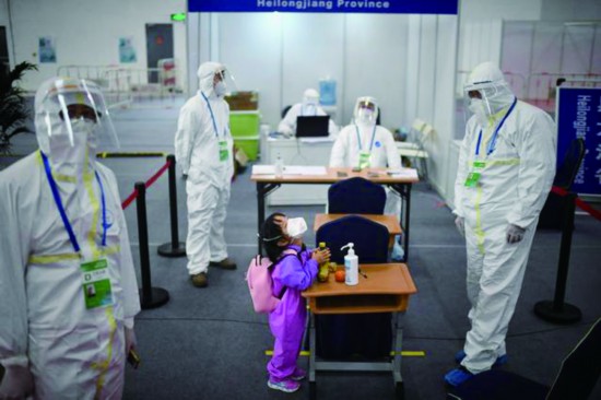 2020年3月25日,入境人员在新国展转运集散地在等待办理登记手续。 郝 羿 摄