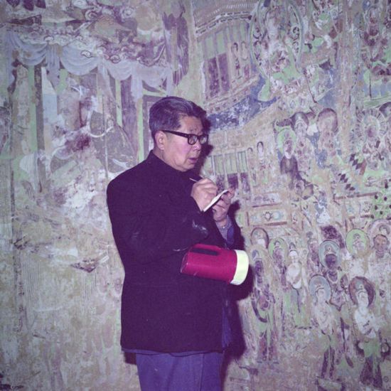 1983年敦煌艺术研究专家常书鸿在敦煌 石少华 摄