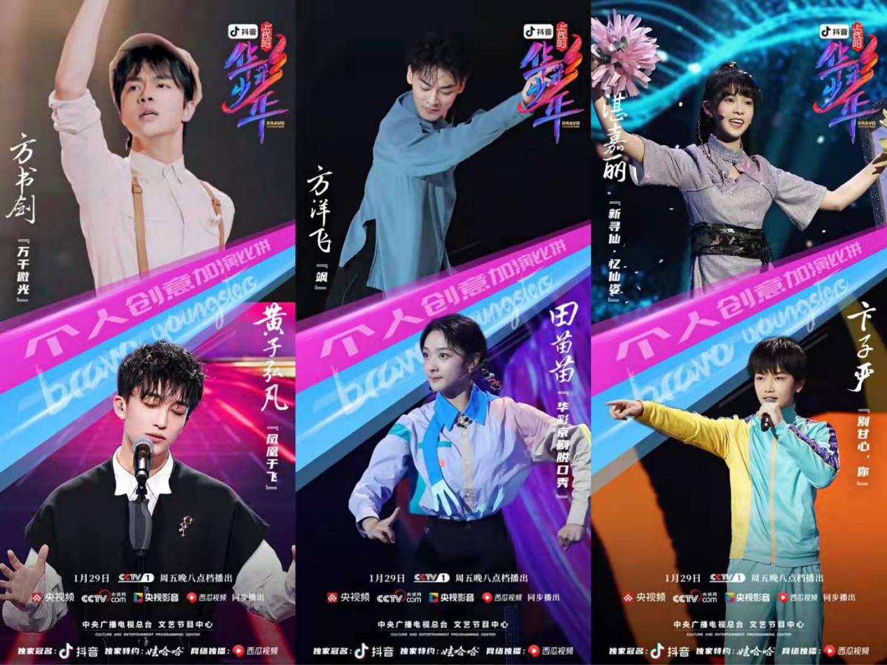 黄欣苑说唱与戏腔融合的《我的新衣》、冯晟画面感十足的吉他弹唱《思合院》、卞子严以“赶鸡”开场的《别甘心你》、方书剑的音乐剧选段《万千微光》与黄子弘凡将古曲与现代电子音乐元素结合的《凤凰于飞》......或许“传统文化新表达”的探索之路漫漫,然少年们已以行动与作品表达出他们“将上下而求索”的决心,这也成为第三期《上线吧!华彩少年》最终的华彩时刻。