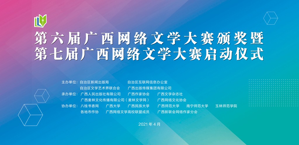 2021年4月24日下午15:30,第六届广西网络文学大赛颁奖暨第七届广西网络文学大赛启动仪式将于广西大学新闻与传播学院融媒体中心演播大厅举行。无法到达现场的作者、读者们也可通过人民网广西频道的线上直播进行在线观看。