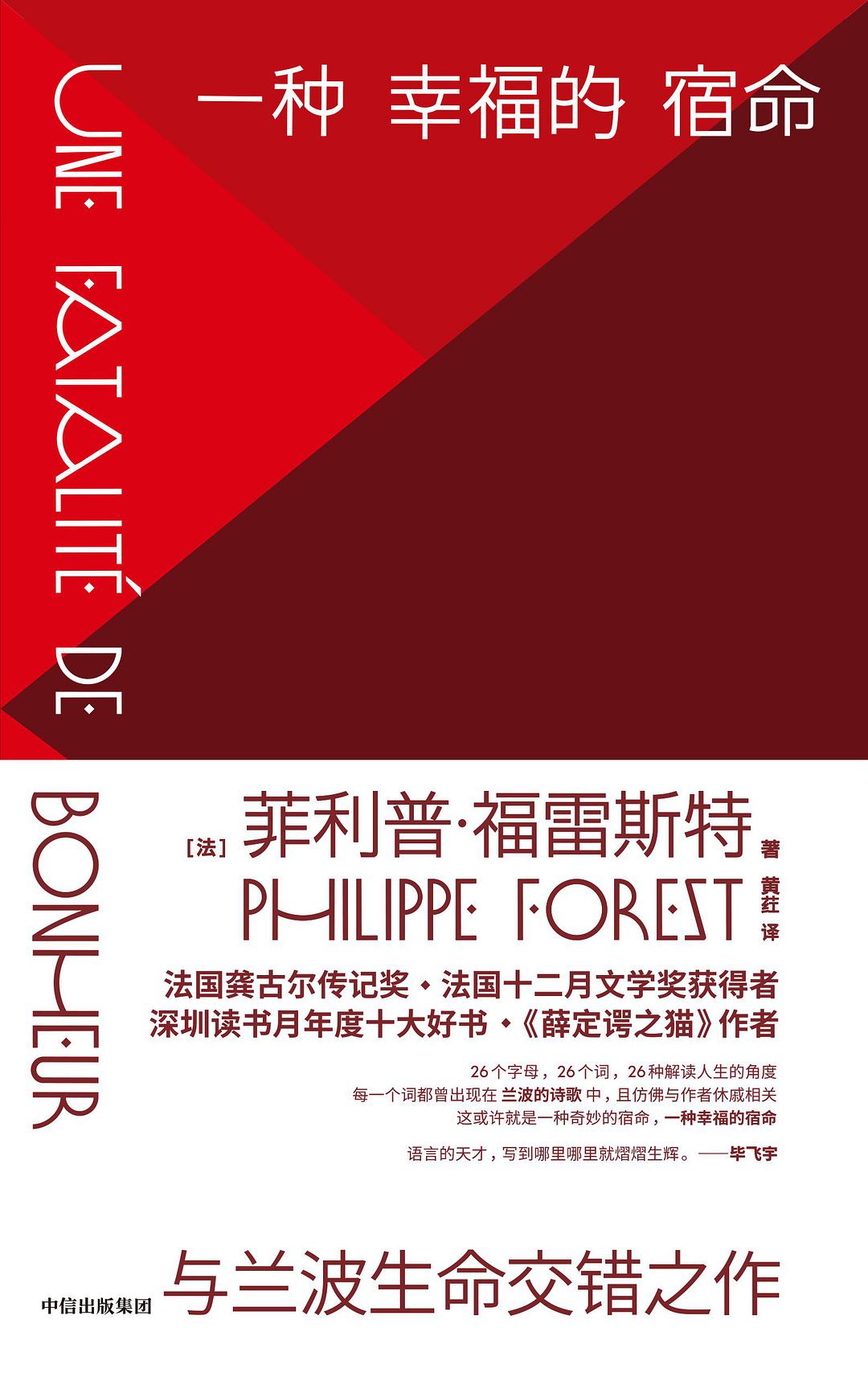 《一种幸福的宿命》同样获得十二月文学奖,而且创作原点仍然是女儿的离世。福雷斯特再次采用“自我虚构”手法,巧妙以A、B、C……的顺序方式,将兰波诗文中的26个词语与字母表中的26个字母对应,既解读兰波的诗作,也回望了自己的生活。福雷斯特称这种手法从《易经》中获得灵感:《易经》有六十四卦,每个卦象都在解答人们向上天提出的种种疑问。巧合的是,兰波与波丽娜一样也是死于骨癌。或许,这是福雷斯特之所以选择通过兰波来解读自己人生的原因吧。
