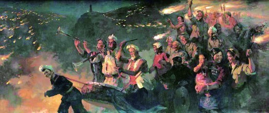 此外,艺术创作还要体现出对民族风格、中国气派的充分表达,这是一个国家能立于世界之林的底气。董希文的《开国大典》、石鲁的《东渡》、赵望云的《雪天驮运》、刘文西的《祖孙四代》、沈嘉蔚的《红星照耀中国》、沈尧伊的《地球上的红飘带》等作品,在选题、艺术表现手法、风格特点等方面,都体现了国家和民族发展道路上的精神追求,极具中国气派。