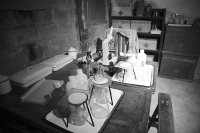 一扇拱门里进去,又是一个厅。用手撩开木格小窗的白布帘,一幕“医生”“护士”正在给“病人”进行手术的场景赫然在目。这是手术室!