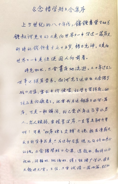杨绛为钟叔河的《念楼学短》合集所作的序