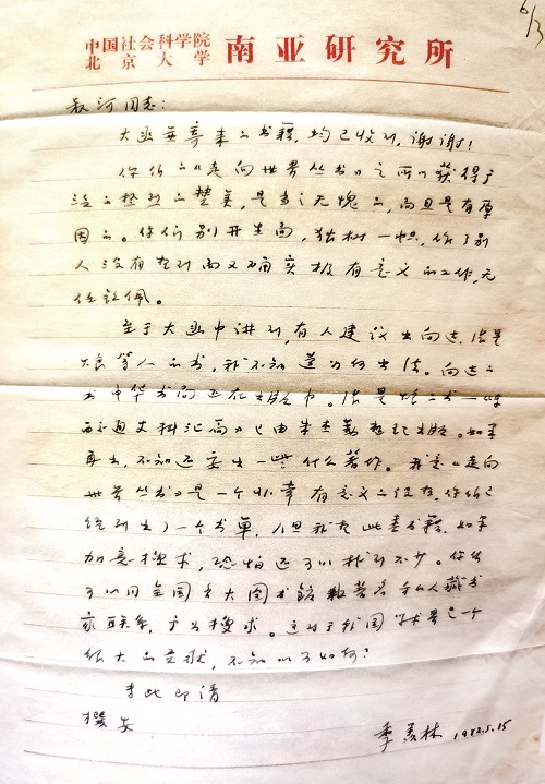 季羡林给钟叔河的信