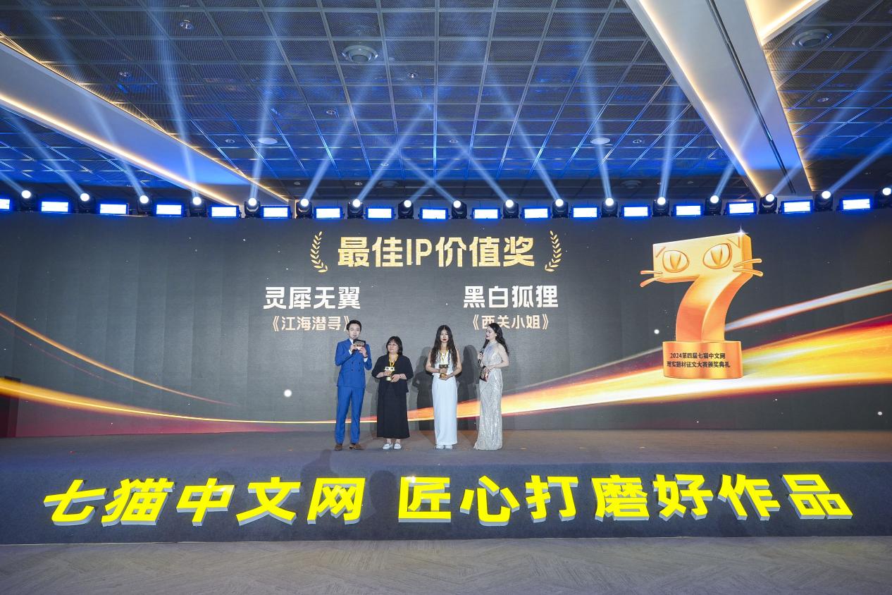 出于对大赛品质的把控,本届最高奖项“金七猫奖”空出。灵犀无翼的《江海潜寻》和黑白狐狸的《西关小姐》两部作品斩获本届“最佳IP价值奖”。