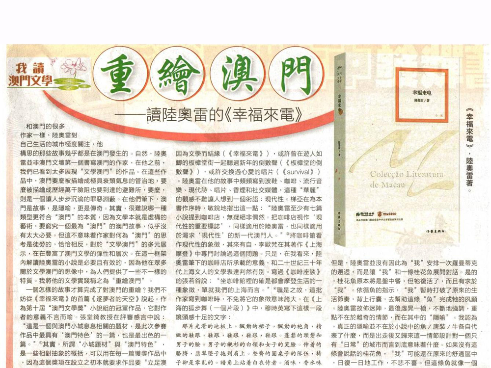 在更多的时候,陆奥雷的澳门故事是有它的实体而非仅仅依靠理念支撑的。在这些“故事容器”裡,作家的个性色彩相当鲜明。男主人公几乎都叫乔捷,他有两个显着的身份标识,其一是小城裡的文艺工作者,其二是不折不扣的E世代青年。我甚至有种感觉,乔捷可以离开女人,但不能离开网络。女性角色呢,通常由一个叫Ivy的女生充当。这个女生似乎没有什么攻击性,但如一缕清香般让人难以忘怀。乔捷和Ivy,流连在小城的板樟堂街和议事亭前地,相约在幽静的咖啡厅和唱片店。他们或许因为文学而结缘(《幸福来电》),或许曾在游人如鲫的板樟堂街一起听过新年的倒数声(《板樟堂的倒数声》),或许交换过心爱的唱片(《survival》)。