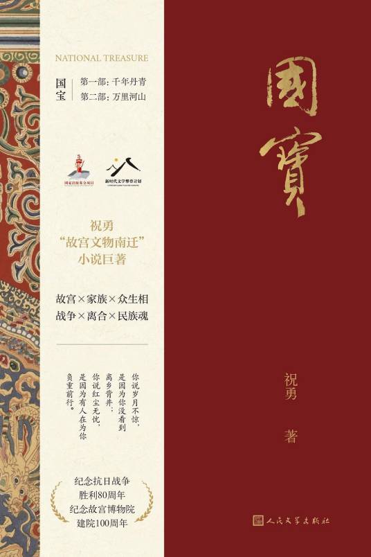 《国宝》通过一个家庭的悲欢离合、聚散流徙,讲述其因南迁而波澜飘摇的家族史,以小见大,以家映国,从烟火日常的民间立场见证磅礴沧桑的近代中国。祝勇用丰赡的细节还原历史现场,以精彩的故事重建南迁之路,投笔一代“故宫人”的守藏之心于纸上,大义凛然,根魂毕现。