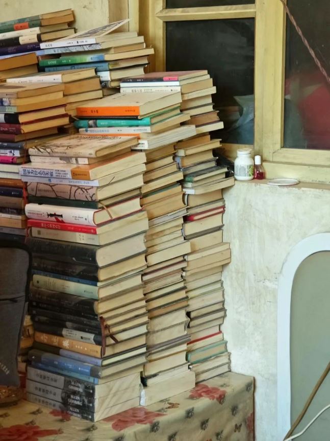 曹兵房间距离床榻咫尺的地方摞满书籍