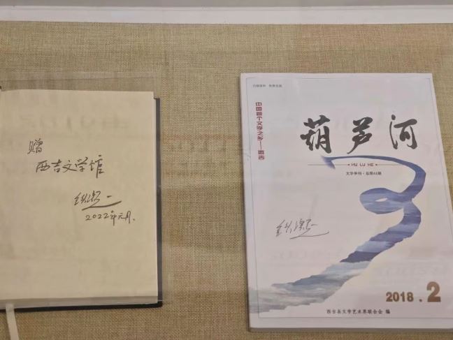 西吉文学馆内展出铁凝在封面签名的文学内刊《葫芦河》