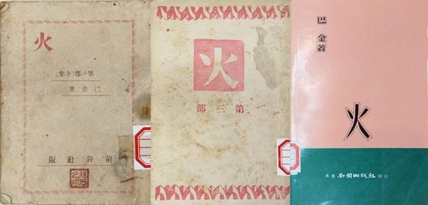 巴金《火》的多个版本,中国现代文学馆巴金藏书文库藏。作者供图