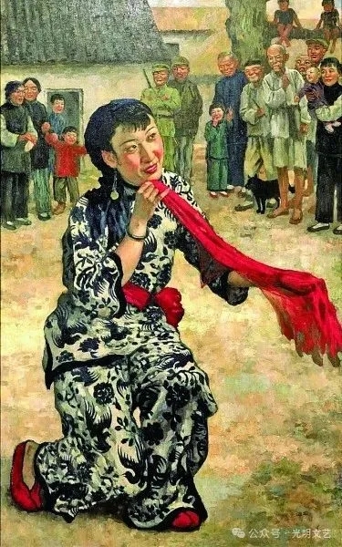 时间拨回到1939年。为抗战筹款,当时正在新加坡举办画展的徐悲鸿,遇到了来此地演出的新中国剧团。观看了明星演员金山、王莹表演的街头剧《放下你的鞭子》,徐悲鸿深受感动。他用10天左右创作了这幅油画。作家郁达夫称赞,“画里分明戏一场,万头攒动看香娘”。在抗战烽火中,《放下你的鞭子》不但鼓舞了无数仁人志士投身抗战洪流,还创造了戏剧和美术两部经典,成为跨艺术门类创作转化的范例。
