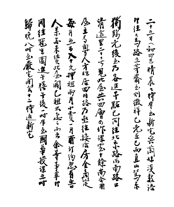 22日 ……下午一时与驾东同往同孚路看屋,嫌其太窄,似不敷施展也。一时半至国华,散课后往新闻报馆晤独鹤商校舍事……